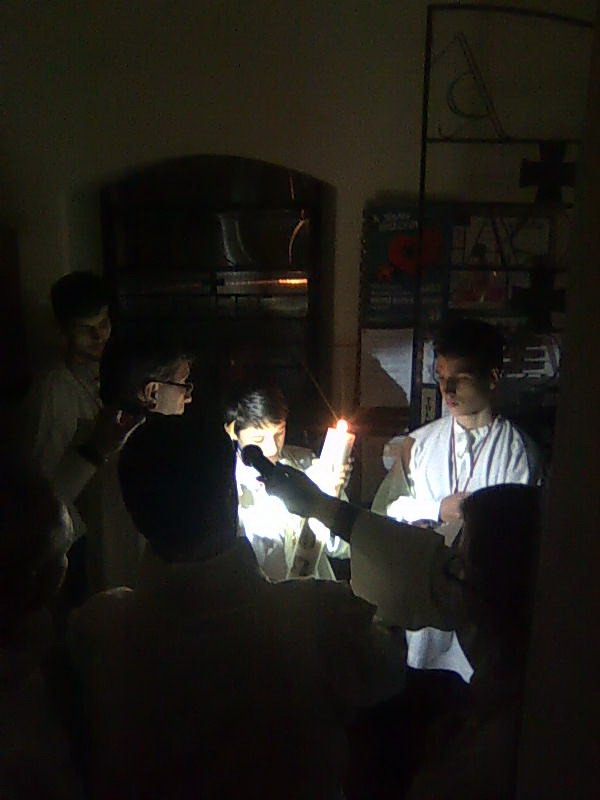 A tűzszentelés és a húsvéti gyertya megszentelése a torony alatti helyen/előtérben történt (a felvétel erről készült), innen indult be az asszisztencia a szentélybe, ahol a szertartás többi része zajlott.