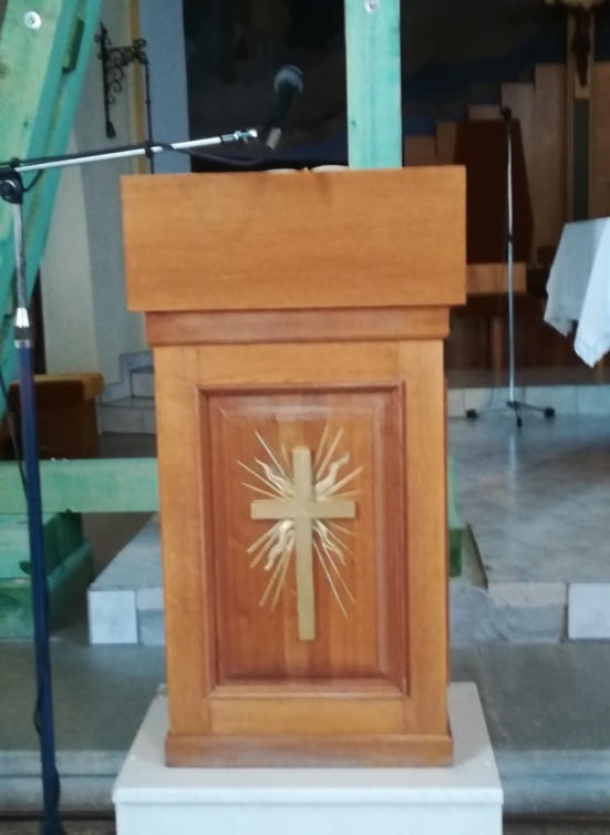 A templomban – átmenetileg – egy „ új” ambó teljesít szolgálatot. Az emelvény a Szent Erzsébet Katolikus Iskolából került hozzánk. Addig lesz itt, amíg a templom műszaki helyzete nem rendeződik. Ezt követően a korábbi ambó fog visszakerülni az eredeti helyére; oda, ahonnan a dúcolás miatt távozni kényszerült.