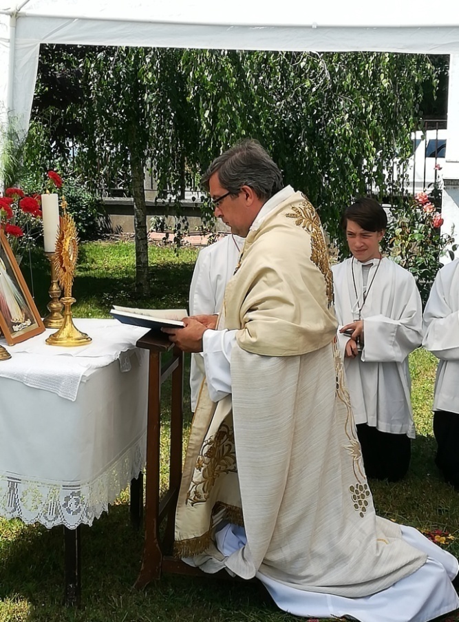 A szentmise végén elimádkoztuk a Jézus Szíve litániát és megújítottuk az eleink által 1944-ben tett fogadalmat. Ezt követően a hívek az utcára vonultak és megtartottuk a Jézus Szíve körmenetet, amelynek rendjéről a rendőrség és a polgárőrség gondoskodott. A körmenet végén a jelen lévők a templomban fejezték be a szertartást, szentségi énekek éneklésével, és a szentségi áldás fogadásával. Plébános atya zárszóként köszönetet mondott minden közreműködőnek.