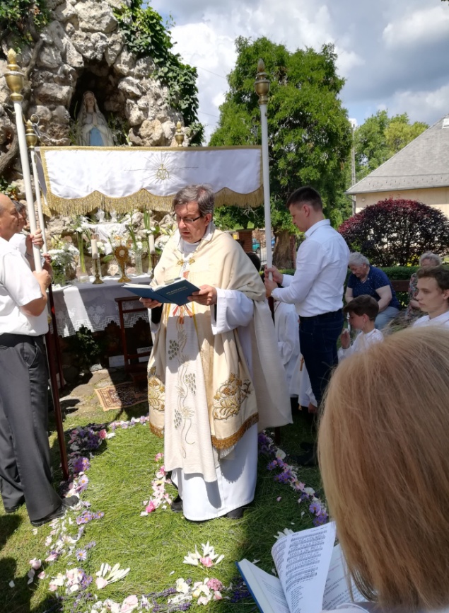 Június 3-án már korán reggel viszonylag sokan szorgoskodtak a templomkertben, illetve a szokásos sátorhelyeken, annak érdekében, hogy el(ő) készítsék az úrnapi sátrakat. A sok szorgos kéz és a nagy mennyiségű virág meg is tette a hatását: a szentmise kezdetére mindenütt rend és tisztaság fogadta a templomba igyekvőket. A szentmisén sokan járultak szentáldozáshoz; emiatt két áldoztató is volt. Az ünnepi szentmise után közvetlenül kezdődött a szentségi körmenet. A kereszt és a ministránsok után mentek az elsőáldozók, hogy virágszirmokkal hintsék fel a szentségi Jézus útját. Őket követték a zsoltárosok, majd a pap következett a baldachint vivők körében. Ezután jött sorra az énekkar, majd a hívek tömege.