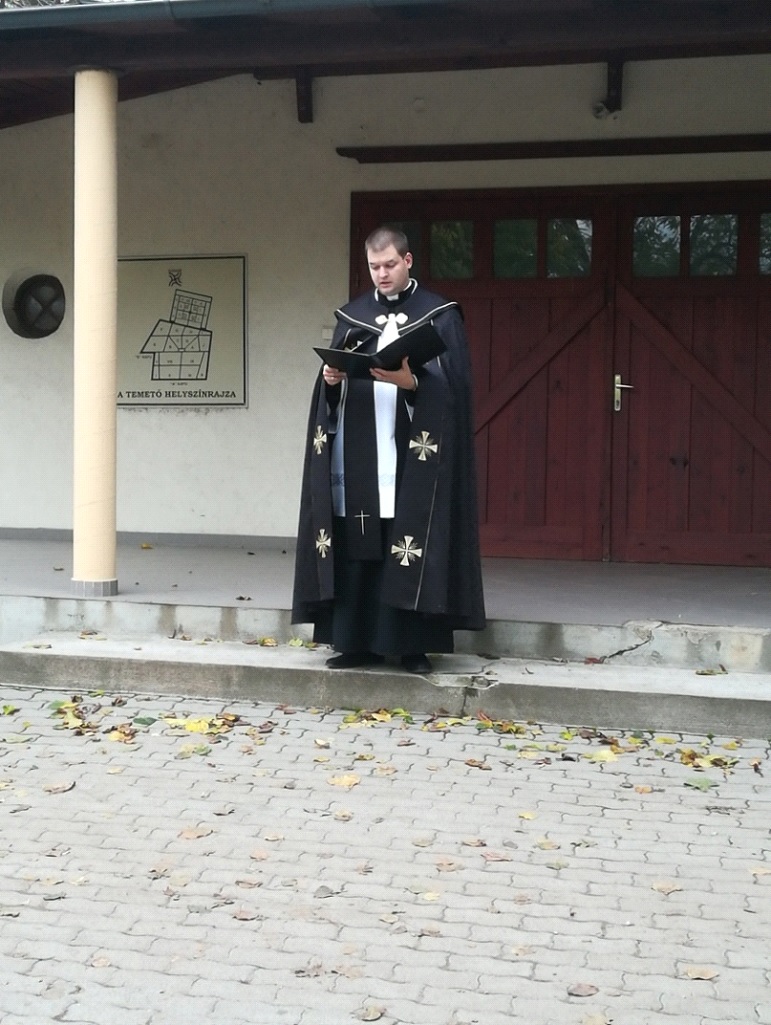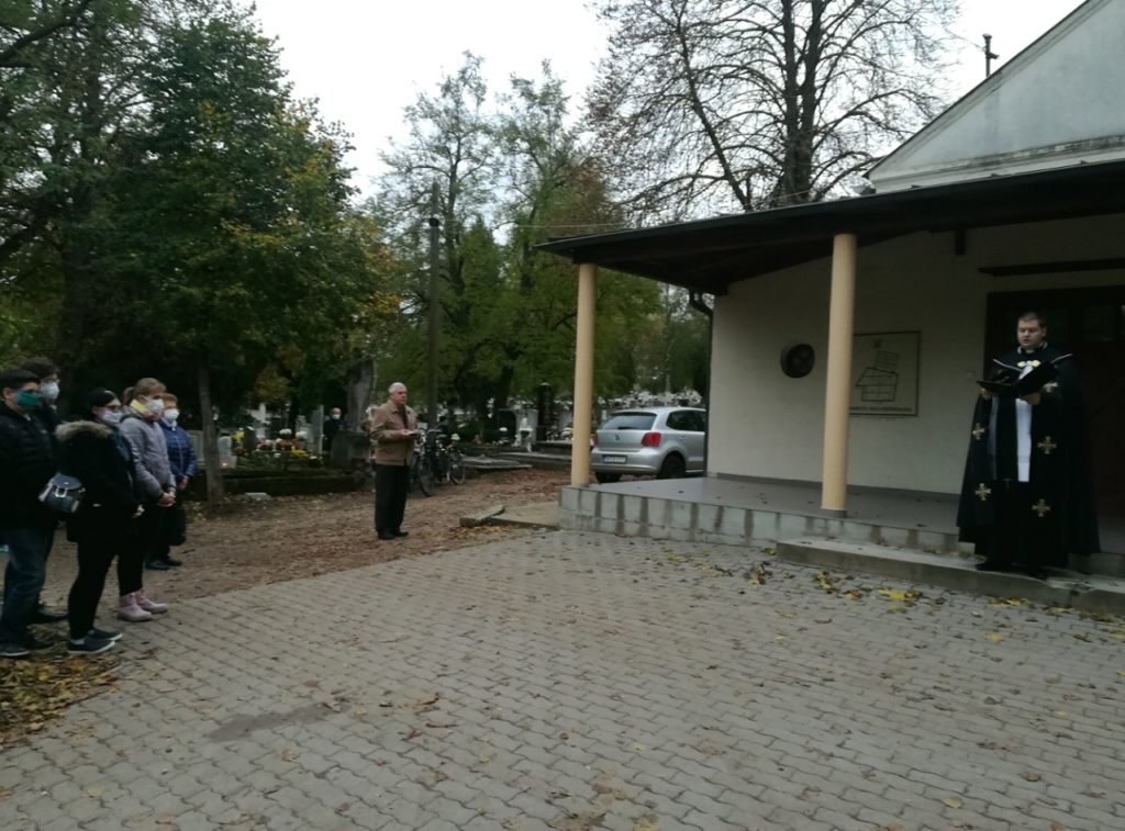 Délután négy órakor került sor a temetői szertartásra, amely  nagyon szép és méltóságteljes volt. A hívek is  számosan megjelentek rajta, noha a  temetőben viszonylag  kevesebb volt a mozgás a korábbi évekhez képest. ( A parkolóban is  elfogadható rend volt és a rendőrség is mutatta magát az ilyenkor szokásos módon.) A szertartást követően került sorra azoknak a síremlékeknek a megáldására, amelyeket az érdekeltek előzetesen bejelentettek. Az alábbi két kép a temetői szertartáson készült.