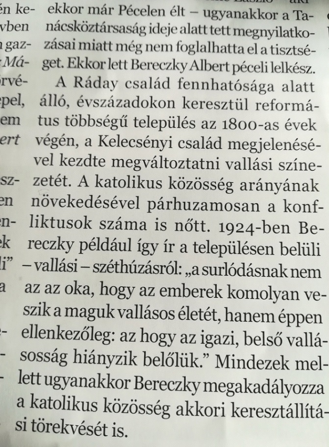 A Péceli Hírek 2020. novemberi számának  Multidéző rovata közvetett módon egyházközségünkre vonatkozó adalékokat is tartalmaz. A cikk (Péceli Kör, Bereczky Albert címmel) alapvetően a nevezett péceli református lelkipásztor életével, tevékenységével foglalkozik, azonban a mellékelt cikkrészlet gyakorlatilag alátámasztja a mi Historia Domus-unknak  azt az 1926. évi bejegyzését, amely az első köztéri kereszt  felállítása körüli jelentős vitákra és a felállítás gyakorlati megvalósítására utal. (A  reformátusok ellenállása,  a képviselőtestület negatív hozzáállása, és  Bereczky Albert péceli református lelkész (később püspök)  személyes szerepe).  (részletesen ld. peceliszilankok.hu)