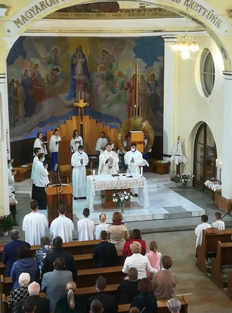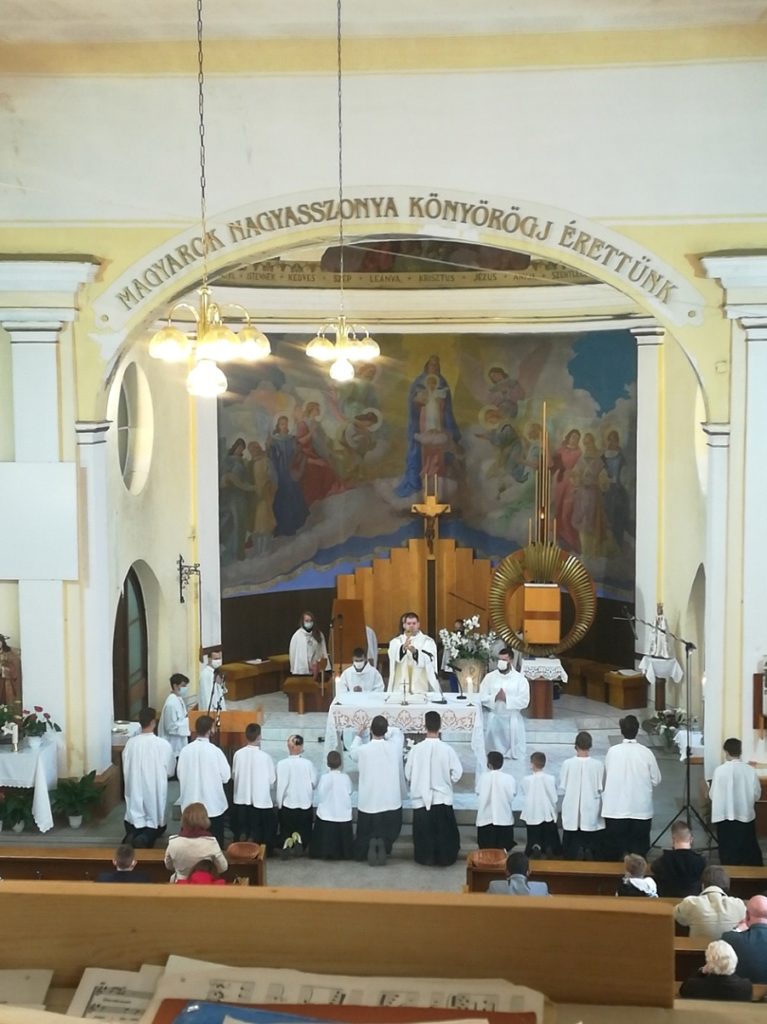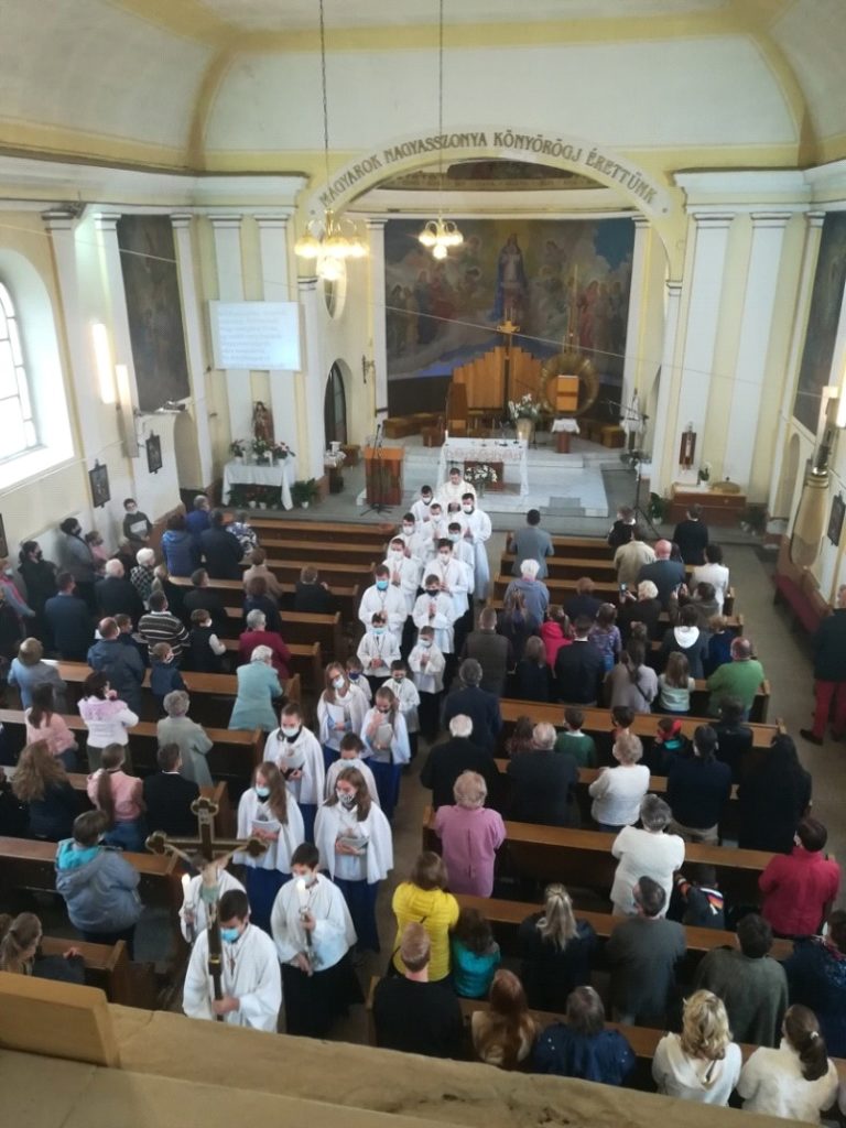 Plébános atya hirdetéséből tudtuk meg, hogy  október 17-én volt a templomban az elsőáldozás. 17 kisgyermek járult első alkalommal a szentségi Jézus  testének és vérének vételéhez.(Az alkalmat a vírushelyzet miatt előzetesen nem hirdették meg, ennek ellenére igen szép számmal jelentek meg a templomban, elsősorban a családtagok, illetve hozzátartozók.)  Az alkalomról – amely egyben az egyházközség ünnepe is – az október 24-i Hírlevélben jelent meg egy nagyobb cikk.