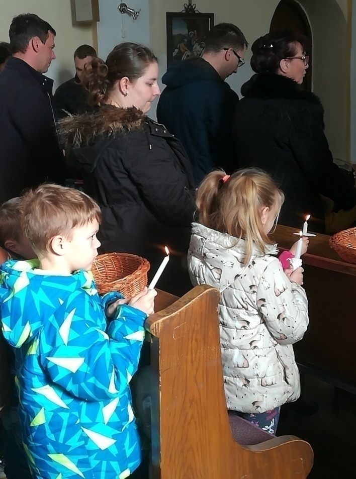 Február 2-án, Gyertyaszentelő Boldogasszony ünnepén  Krisztus urunk templomban való bemutatását ünnepeljük. Az ünnep liturgiájának megfelelően  a bevonulás után az asszisztencia meggyújtotta a hívek gyertyáját (illetve a hívek egymáséit), majd ezután  plébános atya körbement a templomban és megáldotta az égő gyertyákat.