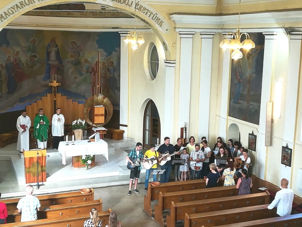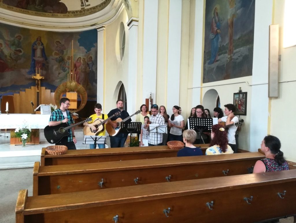Ezen a napon – immár hagyományosan – a Taizei misét énekli a kórus, amelyet  sokan a hívek körül is énekeltek. Ez évben nem a korábban „szokásos” ifjúsági gitáros  együttes volt az énekkar kísérője, hanem az énekkar tagjaiból szerveződött  hangszeres grémium (Ágoston Viktória – fuvola, Erdős Péter – hegedű, Karáth Péter – gitár, Széplaki Pál – basszusgitár, és Kiss Zsuzsanna kántor,karnagy – billentyűs). Plébános atya a szentmise végén  megköszönte a kórus szolgálatát. Az alábbi képek a szentmisén készültek.